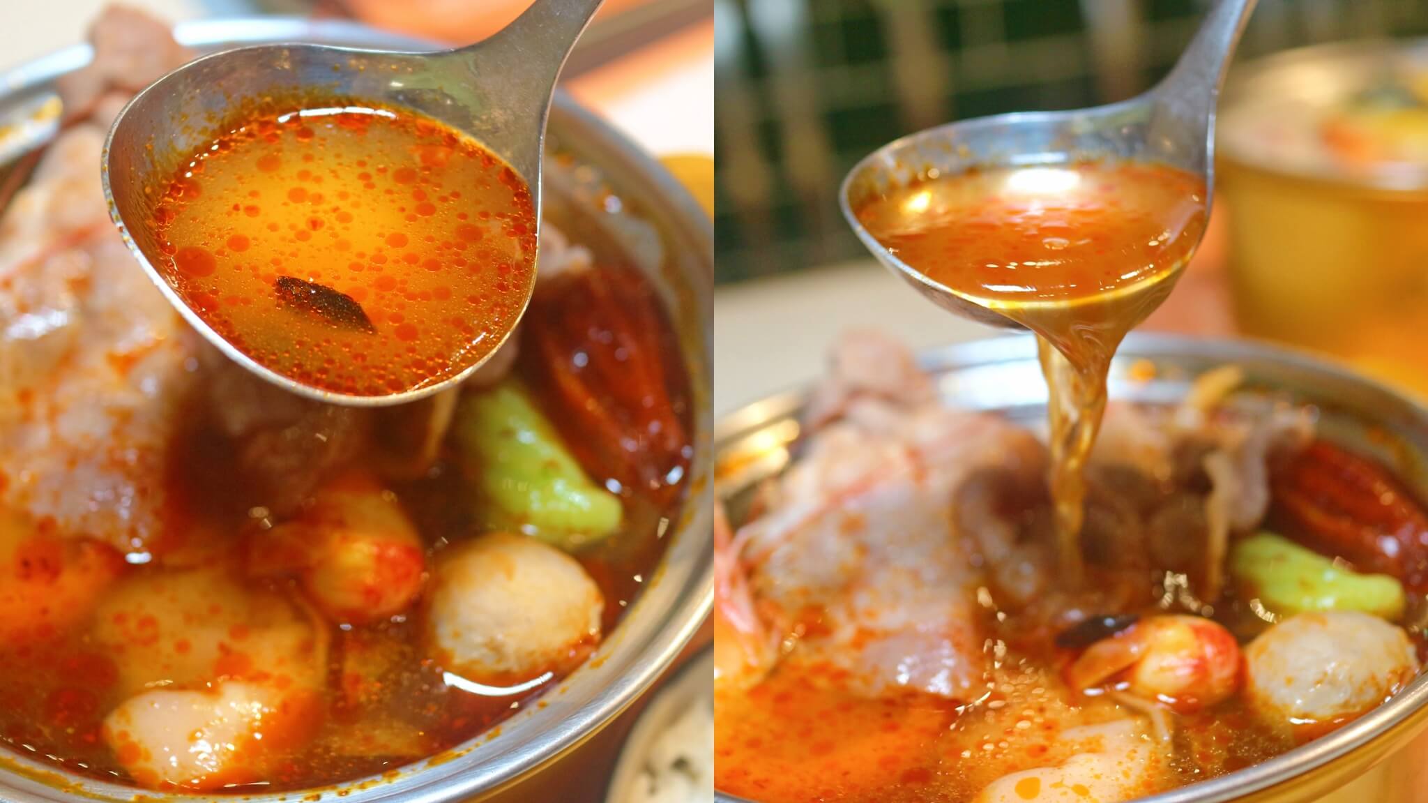 湯頭麻辣帶有鮮甜 , 吸滿湯汁的肉片 , 火鍋料吃起來真的很銷魂!