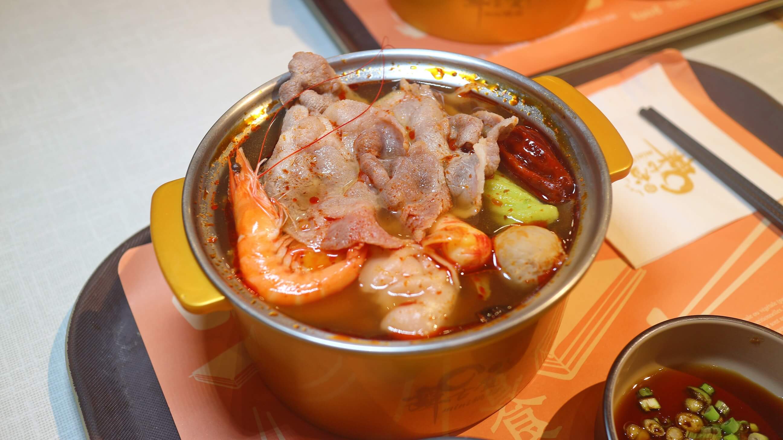 麻辣鍋則是出乎我意料的湯底 , 加上微辣順口的麻和辣 , 不會過鹹可以直接喝的麻辣湯 , 自己一個人也可以吃得好滿足