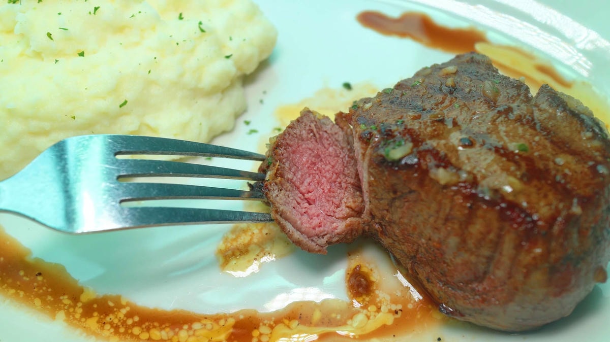 經高溫烤至三分熟滿溢香氣 , 厚實的菲力吃起來鮮甜多汁 , 肉質無過多油脂 , 在那滑嫰口感和特有香氣共同在嘴裡形成的奢華美味