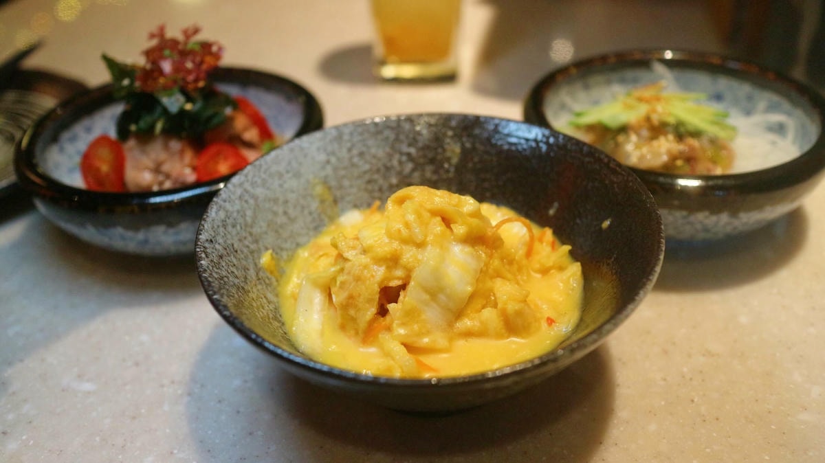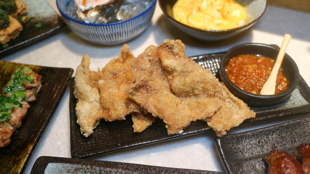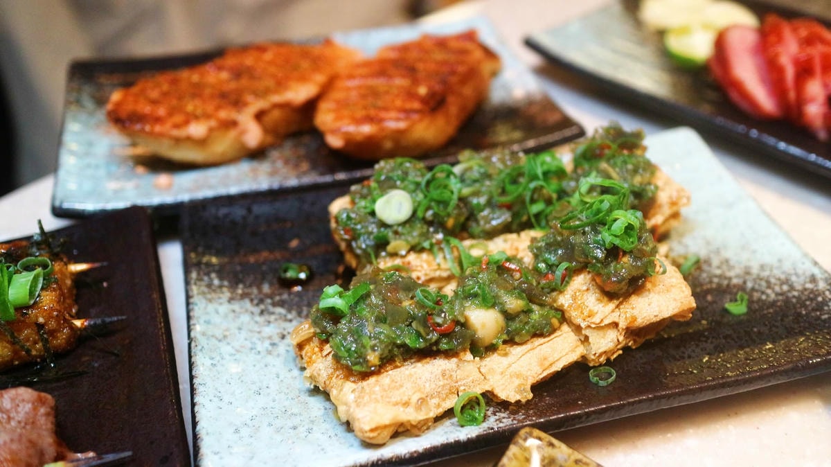 外層炸得酥香脆口 , 上頭有著酒壹特製椒麻皮蛋 , 口感更加口感相當多層次 , 讓人一口接一口欲罷不能