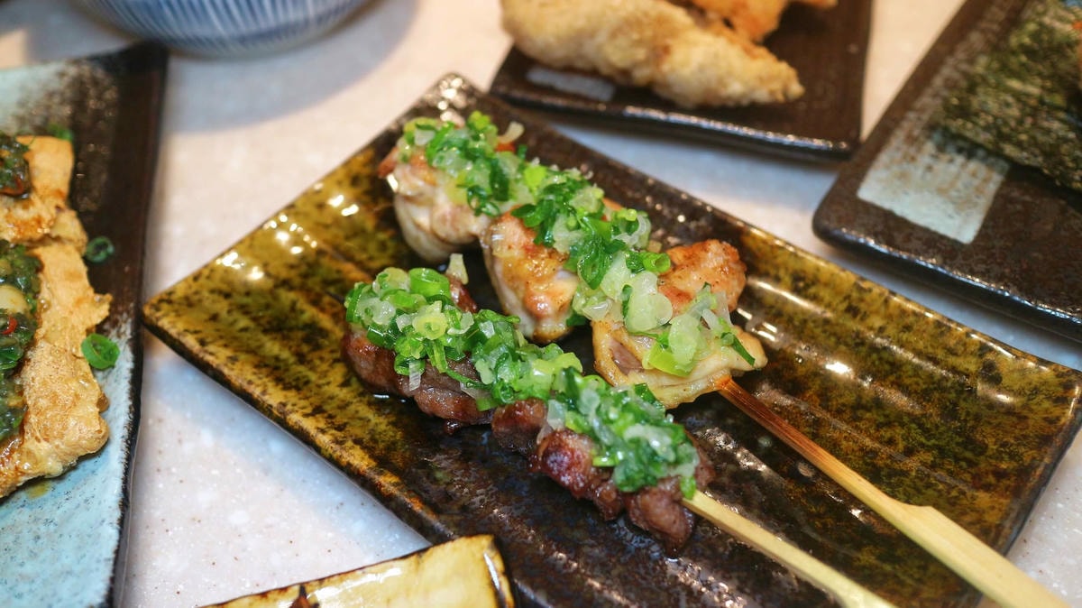 蔥塩雞腿串 用了大量的鹽蔥調味 , 雞腿肉質鮮嫩多汁還很有彈性 , 味道鹹中帶甜 , 味道很讚