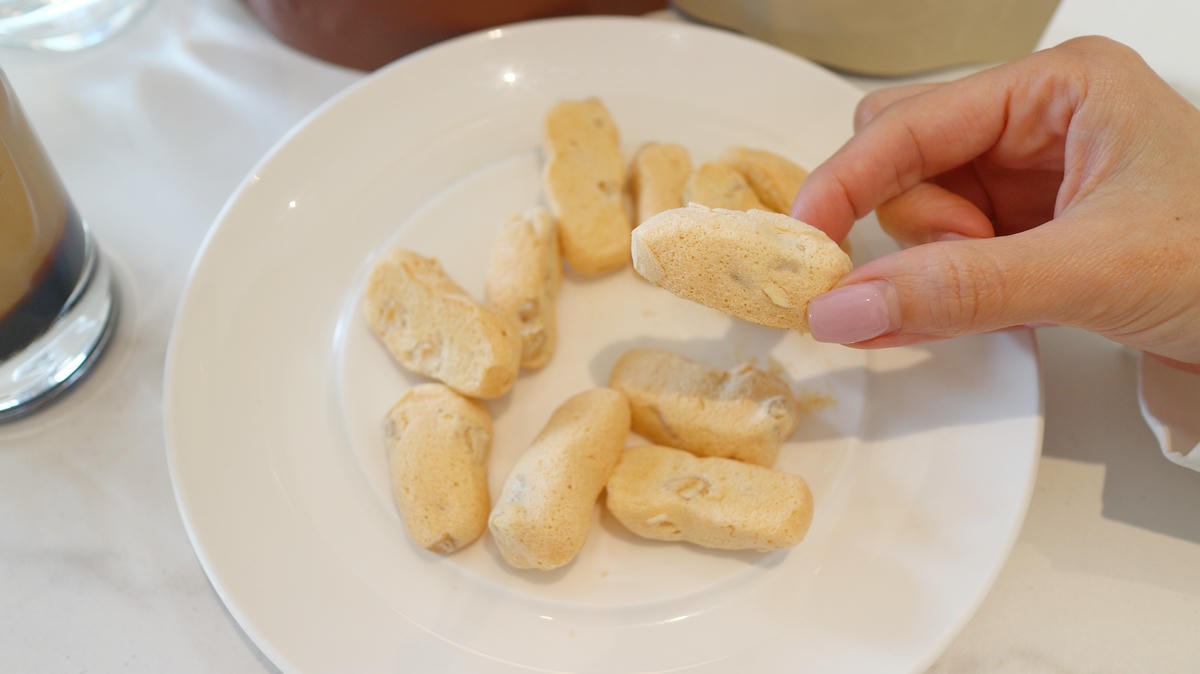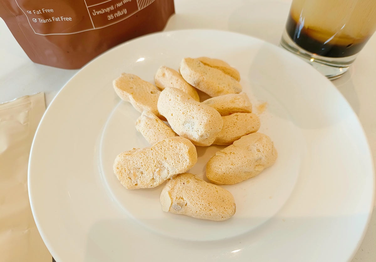 這款屬於香氣濃郁 , 鬆脆的蛋白霜 , 阿華田的香氣在我的嘴裡融化 , 酥脆口感讓層次更豐富 , 輕盈甜點很好吃 ,鬆脆口感 , 烘焙非油炸!與牛奶一起吃當早餐/早午餐或是當零食吃 , 低熱量又可以滿足口腹之慾 , 吃它 , 無罪的快樂