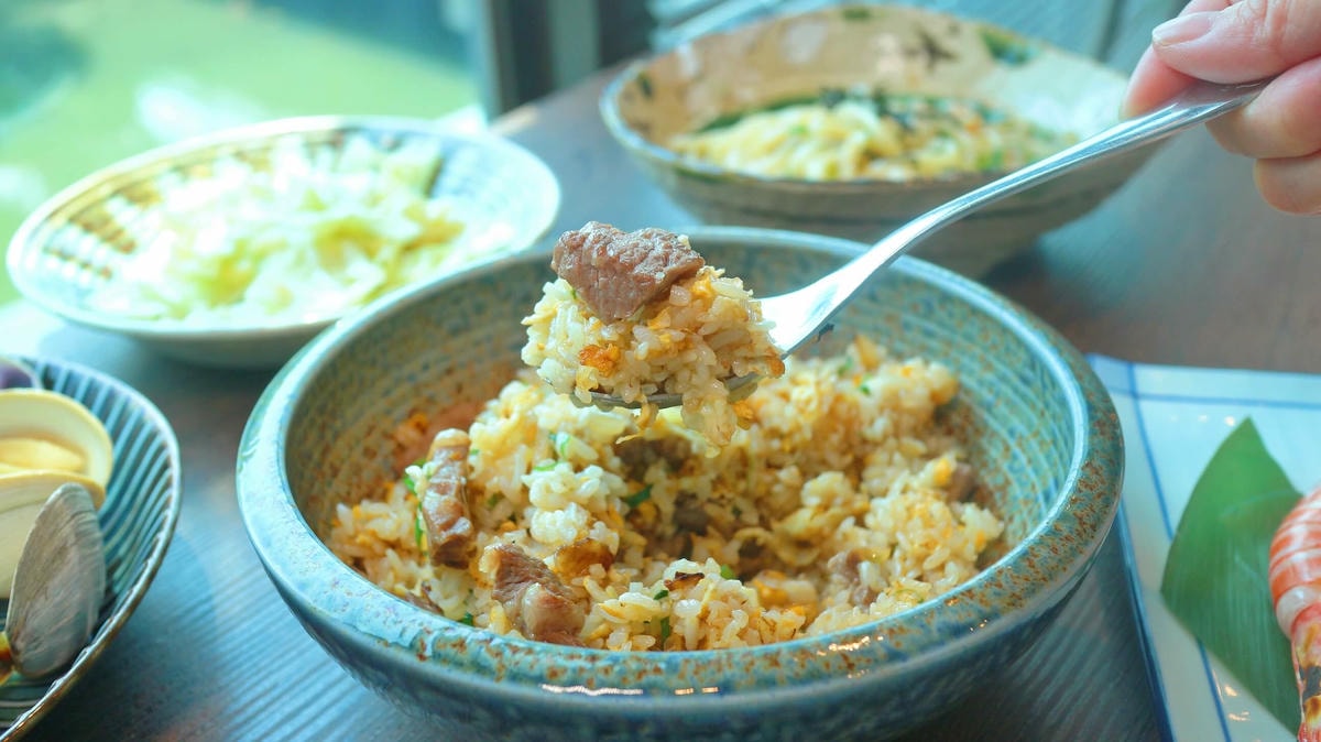 香氣四溢光聞到香味就讓人受不了!米飯粒粒分明 , 炒飯配牛肉大口爽吃超過癮 , 炒飯裡頭加入大塊的牛肉 , 真材實料 , 每一口都鹹香而且不油不膩 , 好涮嘴 , 讓小美吃得超滿足!
