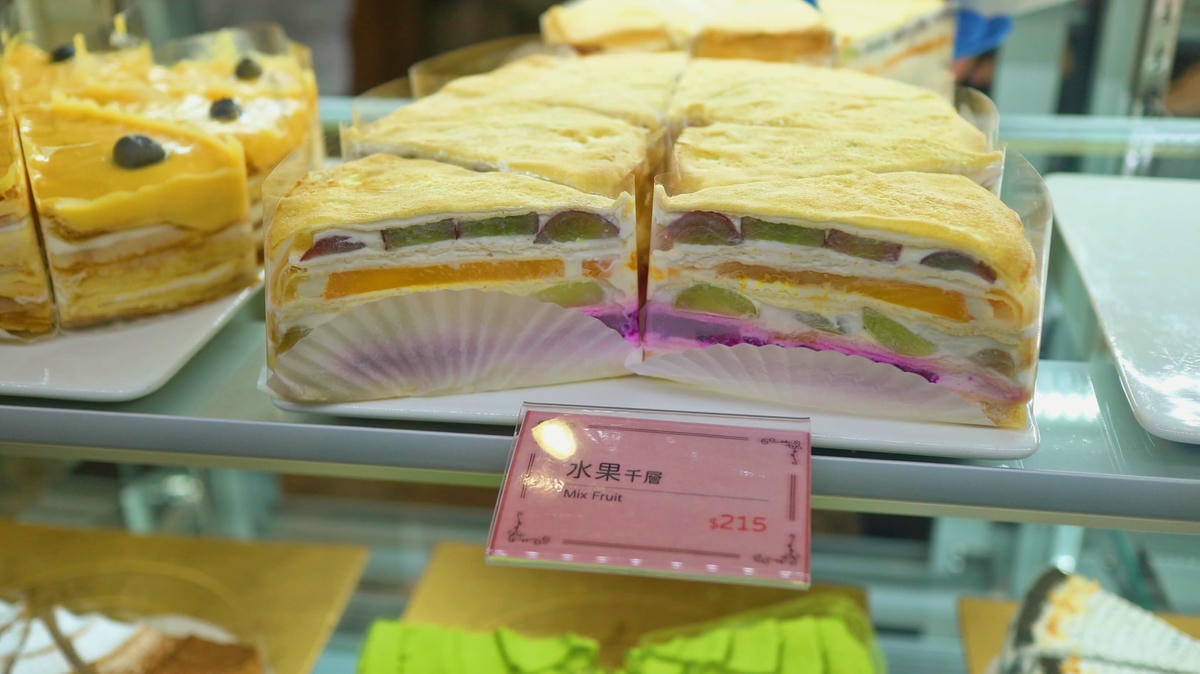 一層一層夾著不同的鲜美水果 , 裡面除了有薄薄的餅皮 , 還有甜而不膩的鮮奶油 , 每種季節水果的滋味都很濃郁 , 一入口豐富變化成各式口味的美味 , 我好愛啊 …