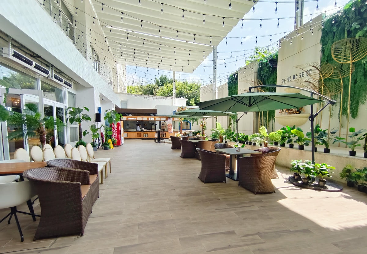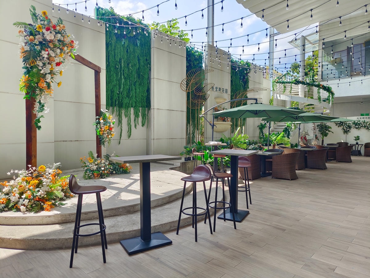 晶宴會館新莊 峇里斯莊園 有室內和室外用餐的區域 , 室內寬闊華麗 , 位子多而且舒適 , 室外又是不同的風格 , 有如小花園一樣優雅 , 位子也沒有太多 , 如果喜歡戶外的位子可以早點來…