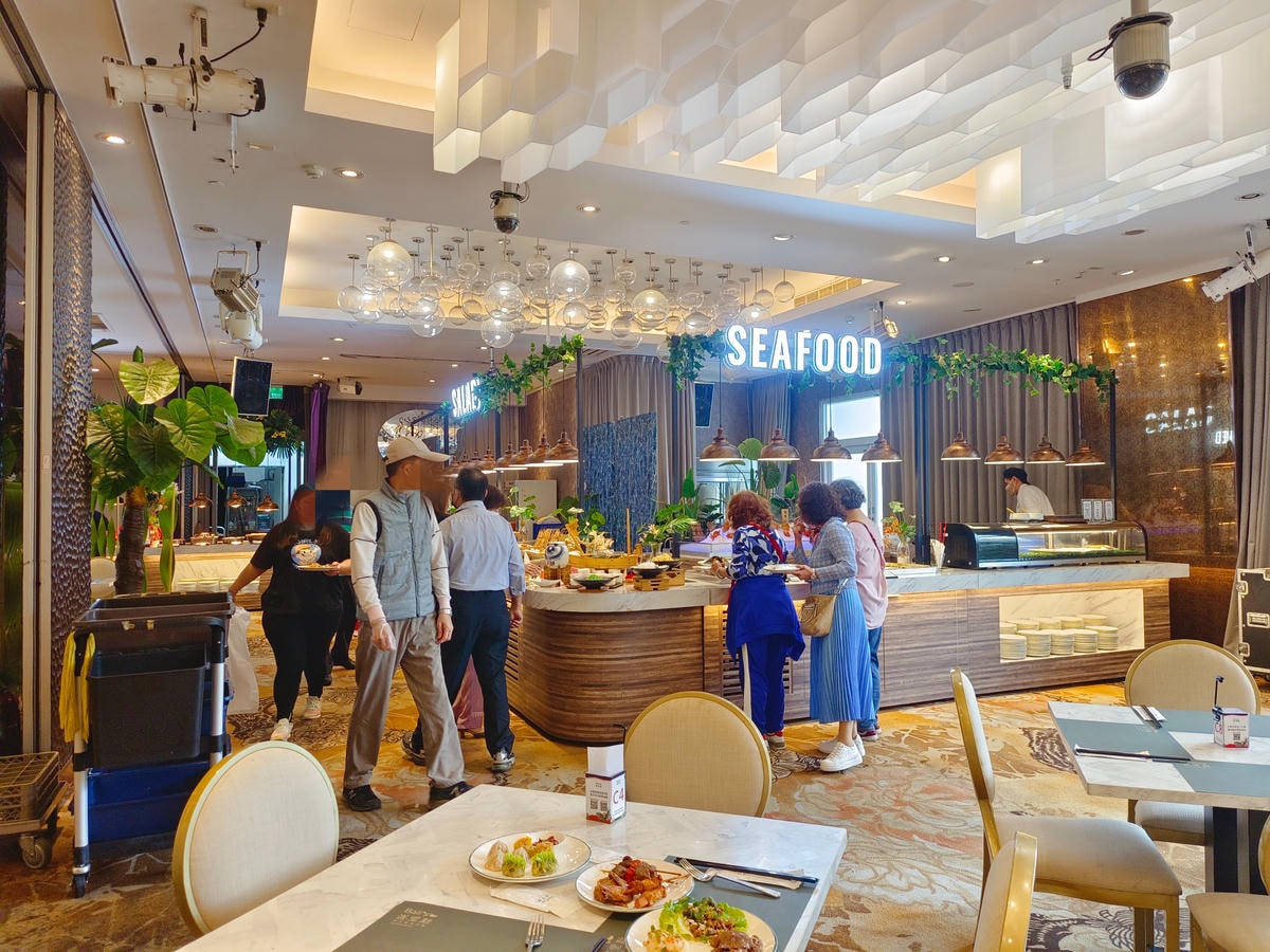 很怕吃不到的小美和朋友11點一開門就已在櫃台等候排隊了 , 等服務人員安排入座 , 之前都是喝喜宴來 , 晶宴會館新莊 峇里斯莊園-南洋海鮮百匯 , 還是第一次來用餐 , 一入門就被琳瑯滿目的美食給吸收去 , 放下背包的我們邁開步伐去拿喜愛的美食 , 沒有想到平日的峇里斯莊園生意真的不錯 , 客人也不少 , 百人的座位區 , 已滿滿有一半的饕客