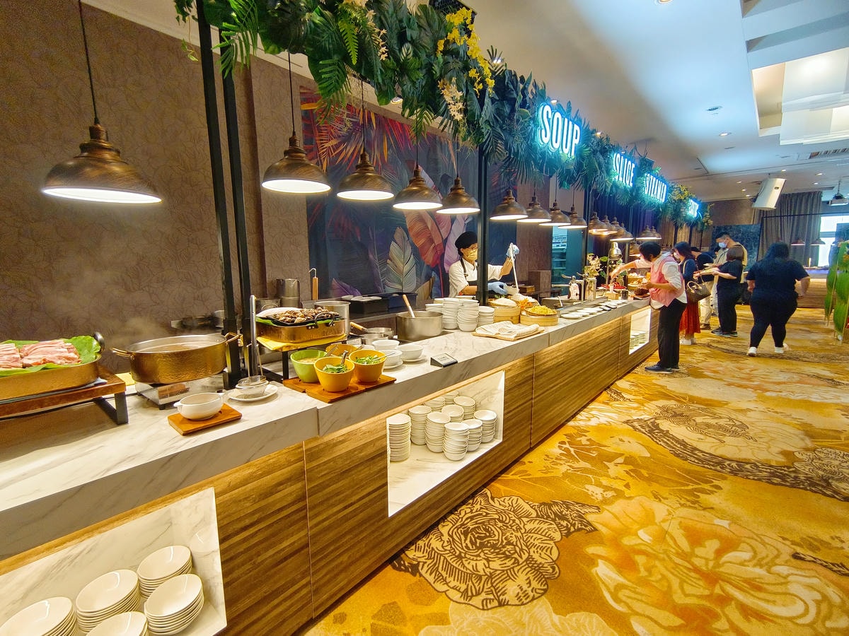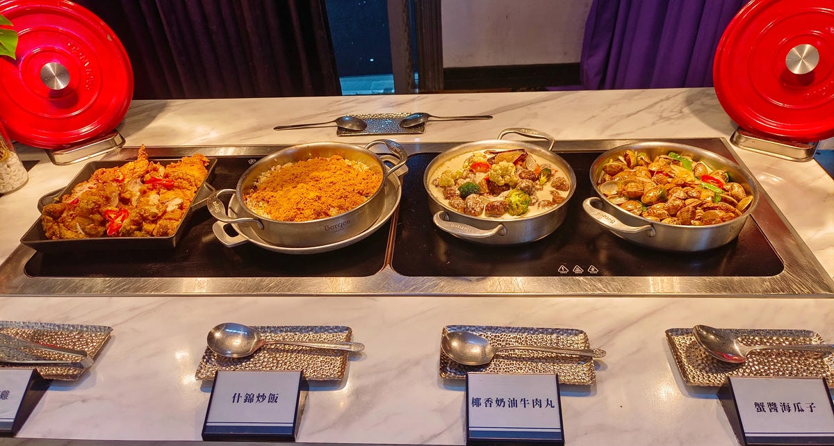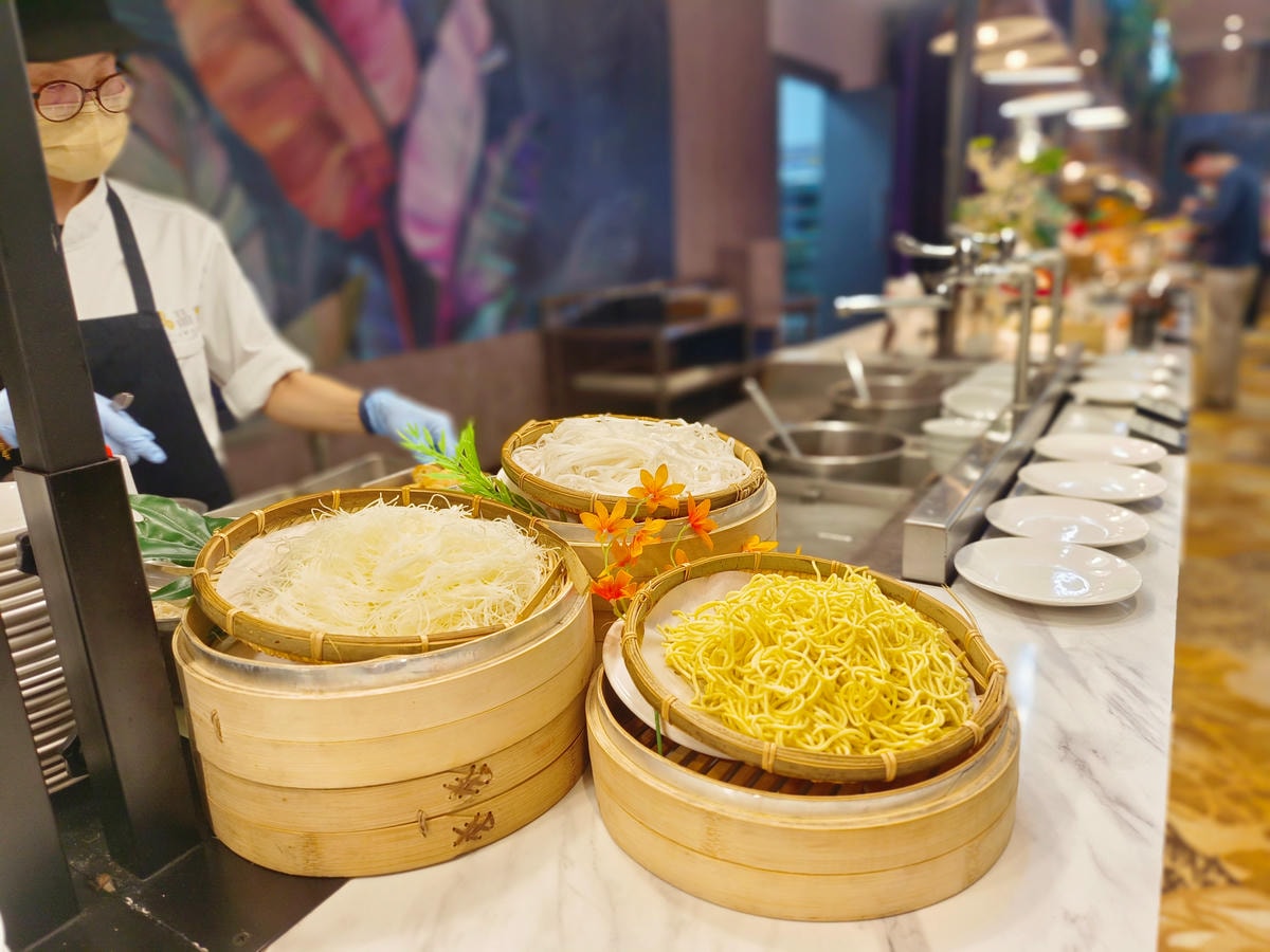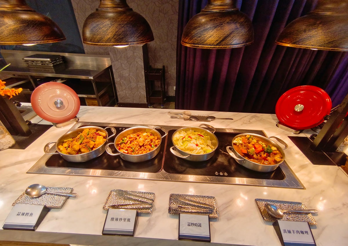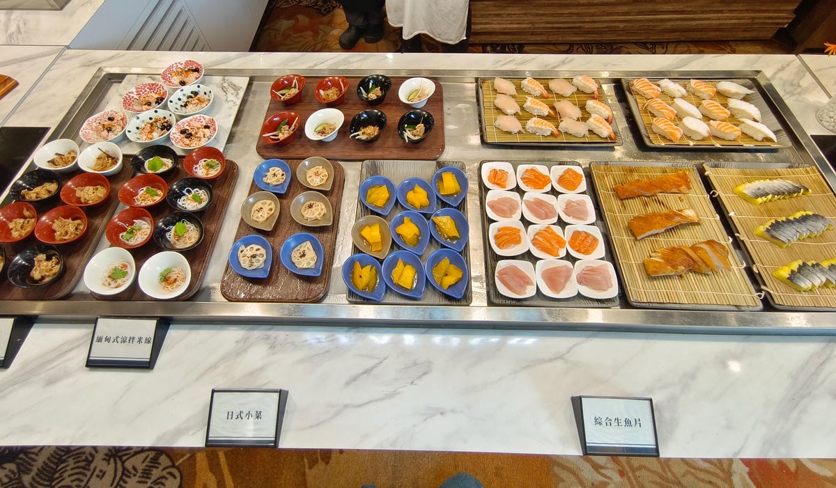 還有一些東南亞風味 , 涼拌冷盤好澎湃哦 , 大根泥拌哲絲 , 越南三明治 , 滇緬大薄片 , 涼拌青木瓜 , 水果生菜豬里肌 , 這區酸辣好吃也是很熱門的一區哦…我一拍完照就好多人在這區夾 , 等我再去夾時都快被掃光光了