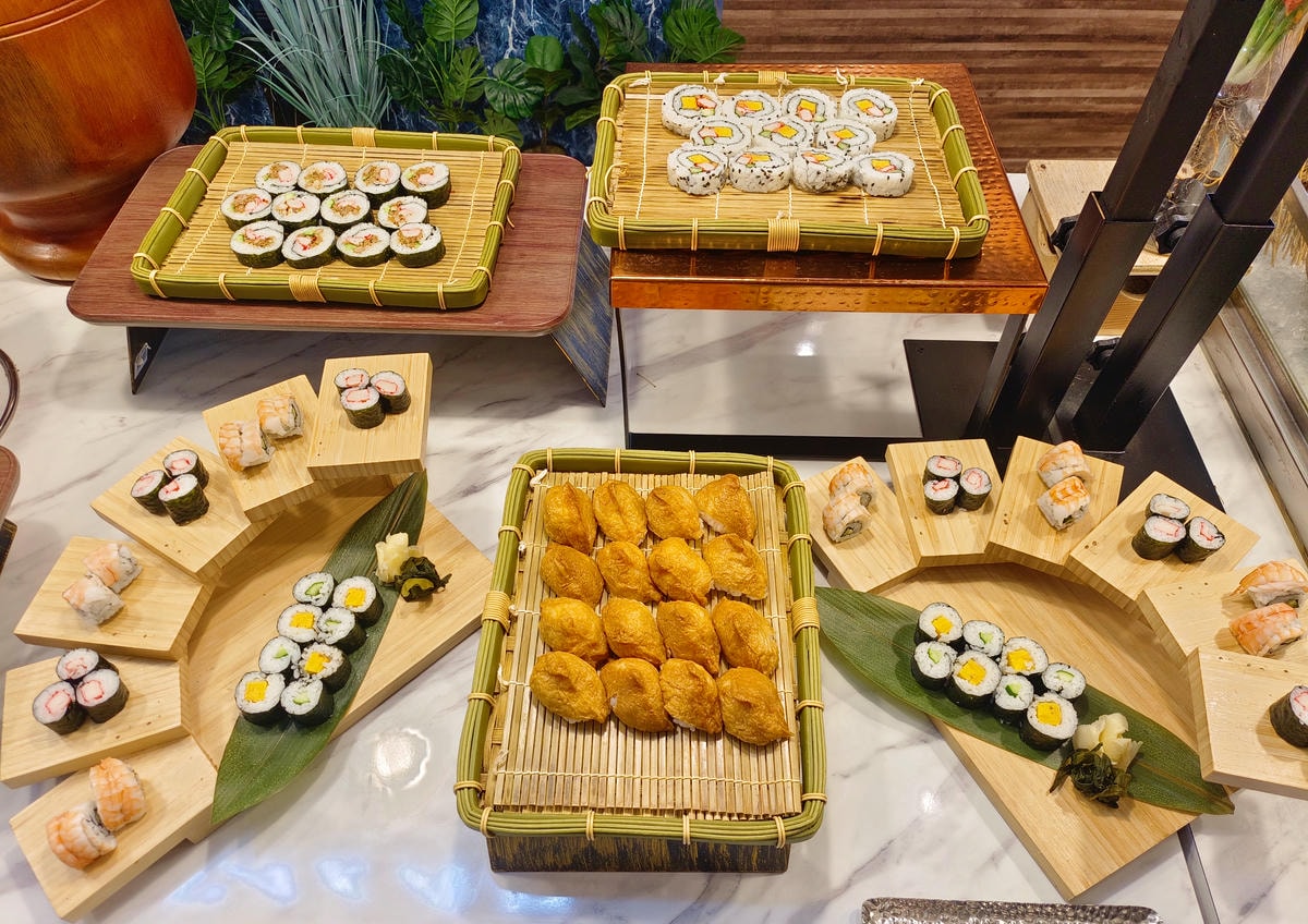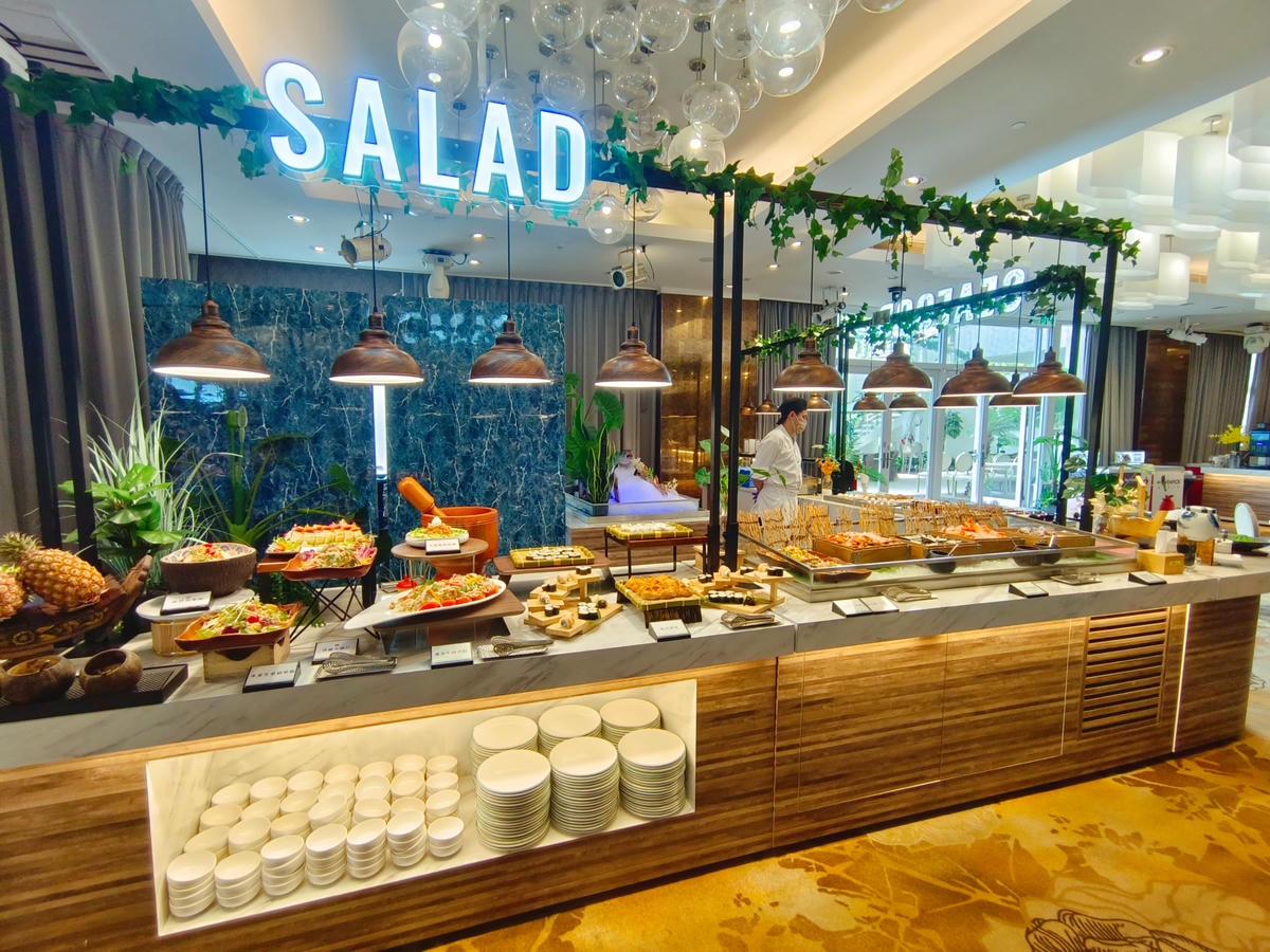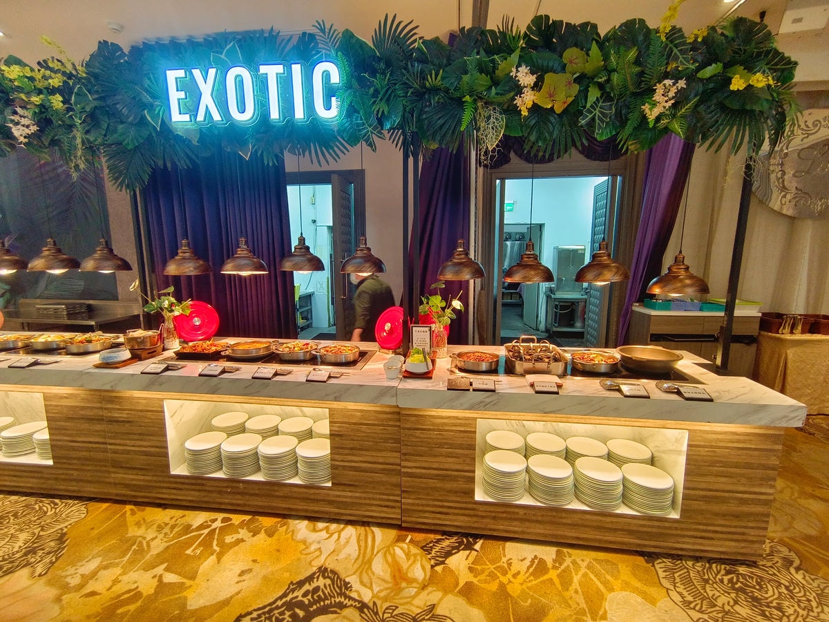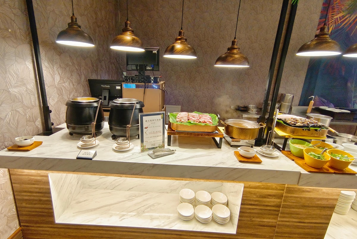 還有一些東南亞風味 , 涼拌冷盤好澎湃哦 , 大根泥拌哲絲 , 越南三明治 , 滇緬大薄片 , 涼拌青木瓜 , 水果生菜豬里肌 , 這區酸辣好吃也是很熱門的一區哦…我一拍完照就好多人在這區夾 , 等我再去夾時都快被掃光光了