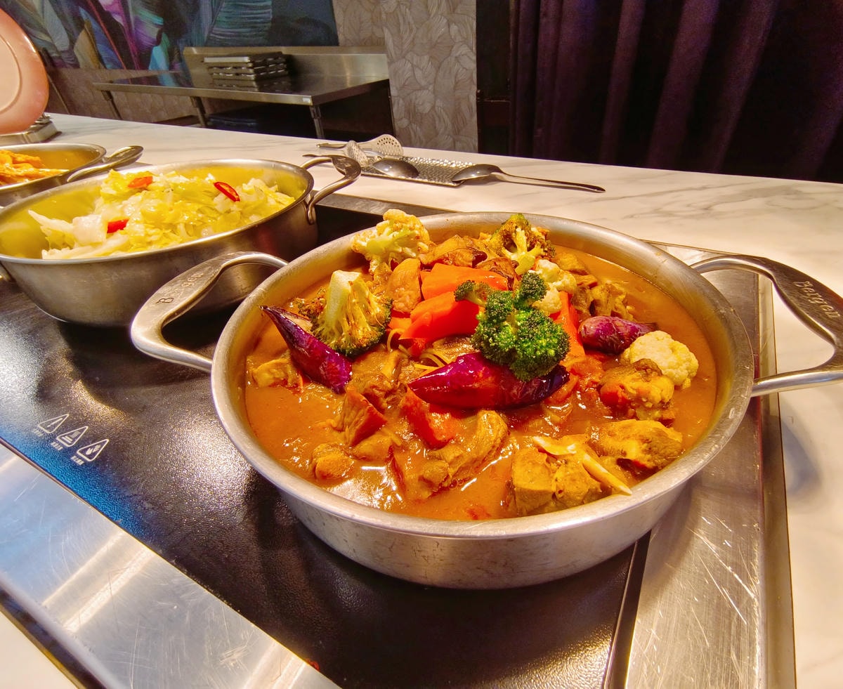 滇緬羊肉咖哩 , 蒜炒時蔬 , 酸辣炒里肌 , 蒜辣雪魚