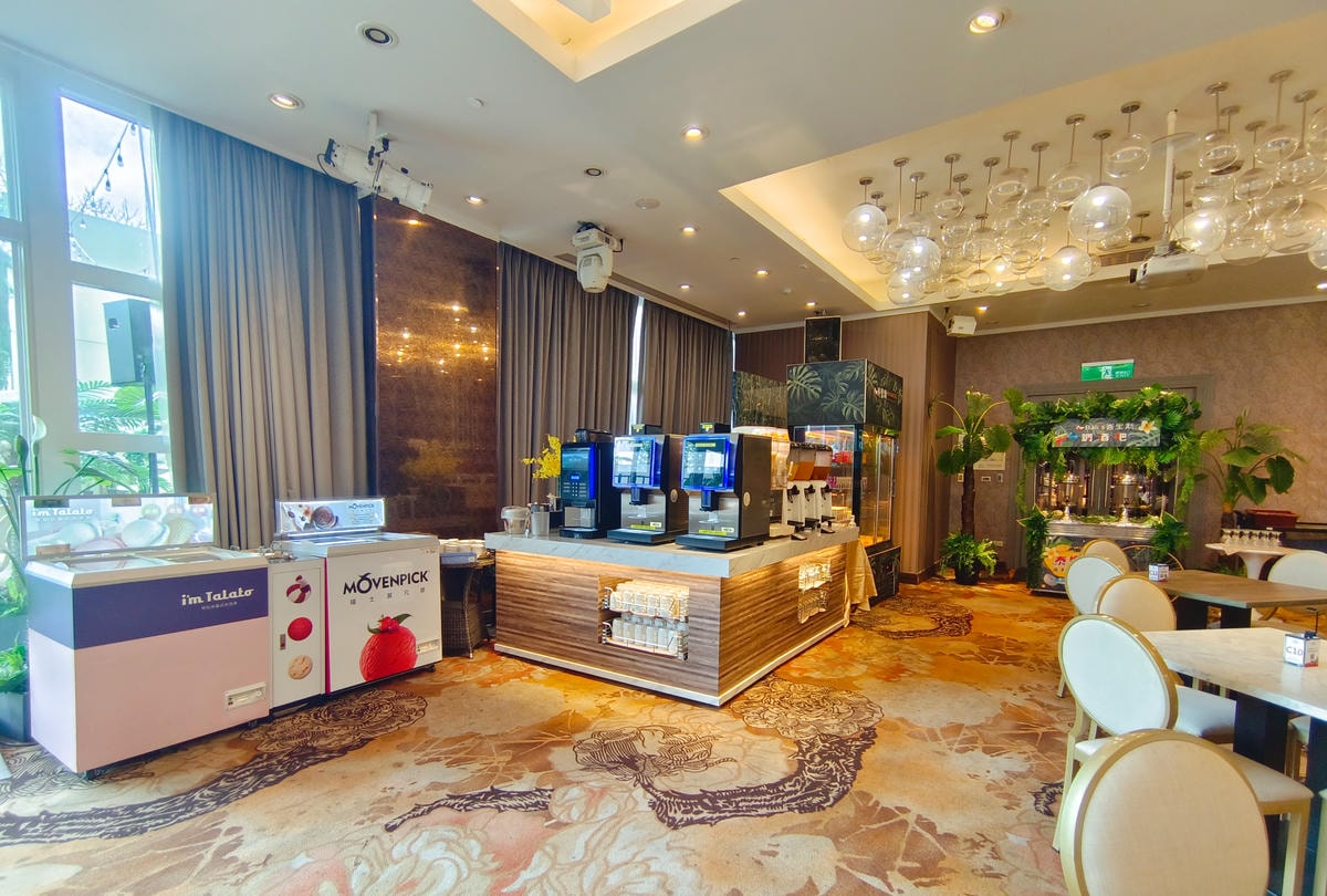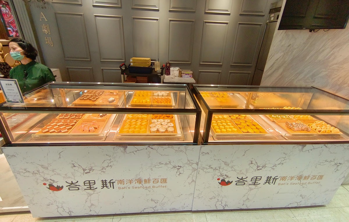甜點區的位置是在入口處的右側 , 接待處前方 , 甜點櫃 , 因為太飽實在是吃不下 , 就沒有來拿了