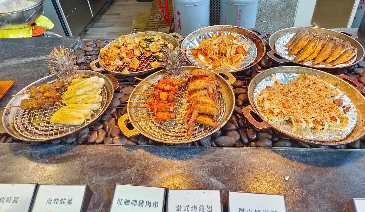 沙嗲牛肉串、煎娃娃菜、紅咖哩豬肉串、泰式雞翅、南風大阪燒、烤時蔬、烤洋芋、烤香魚