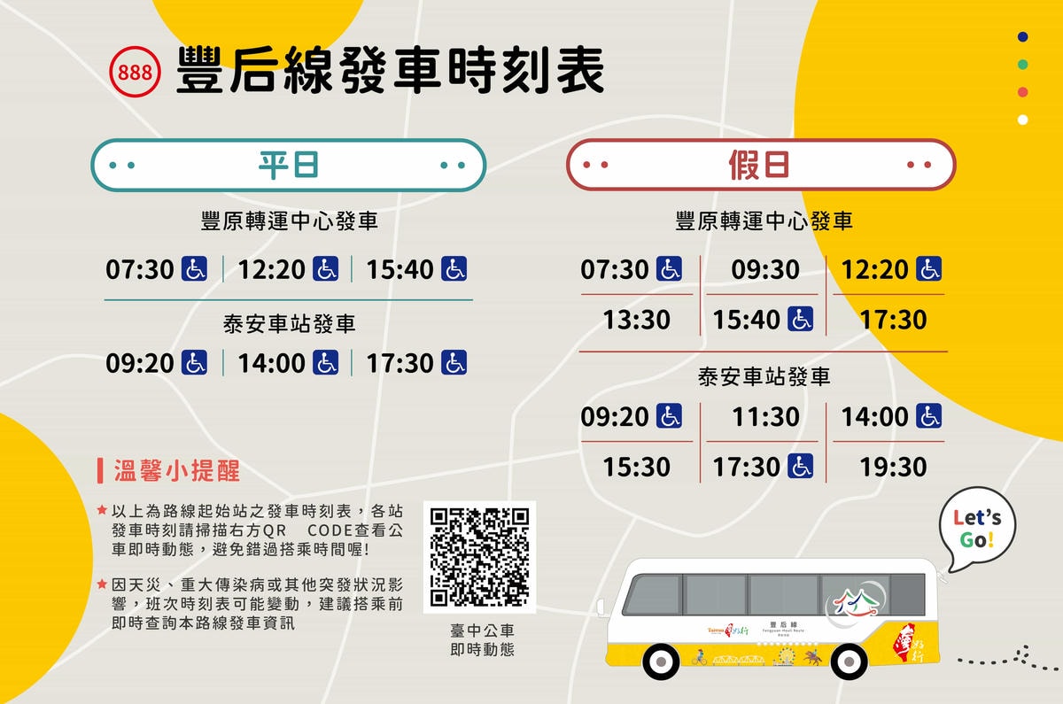 台灣好行888豐后線 , 分別二處發車 , 豐原轉運站和泰安車站