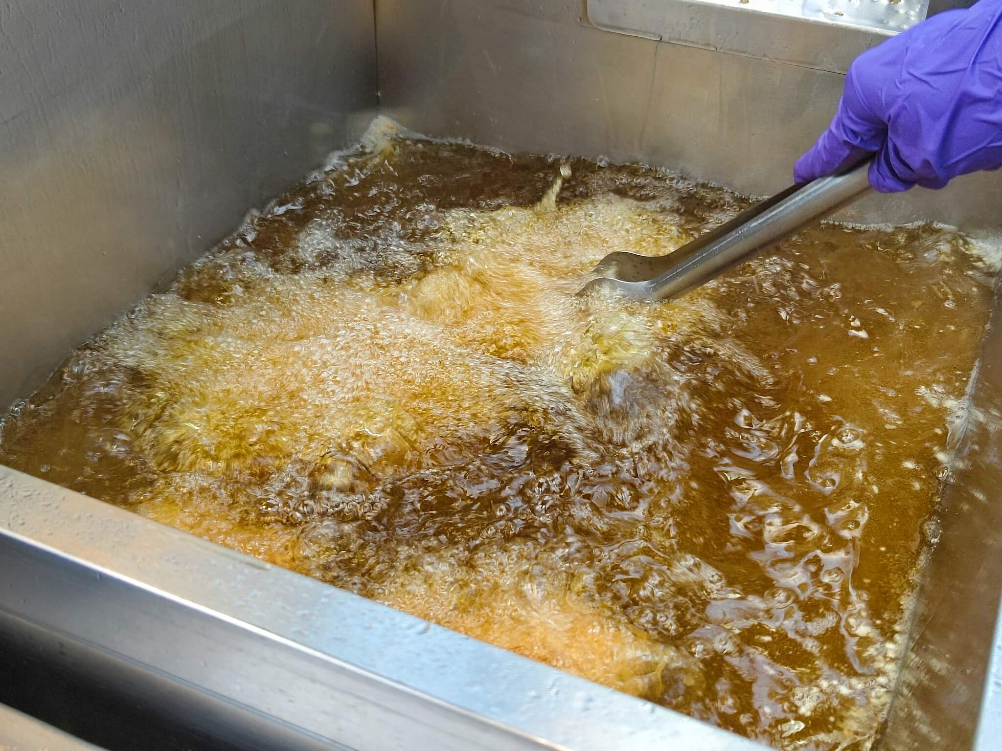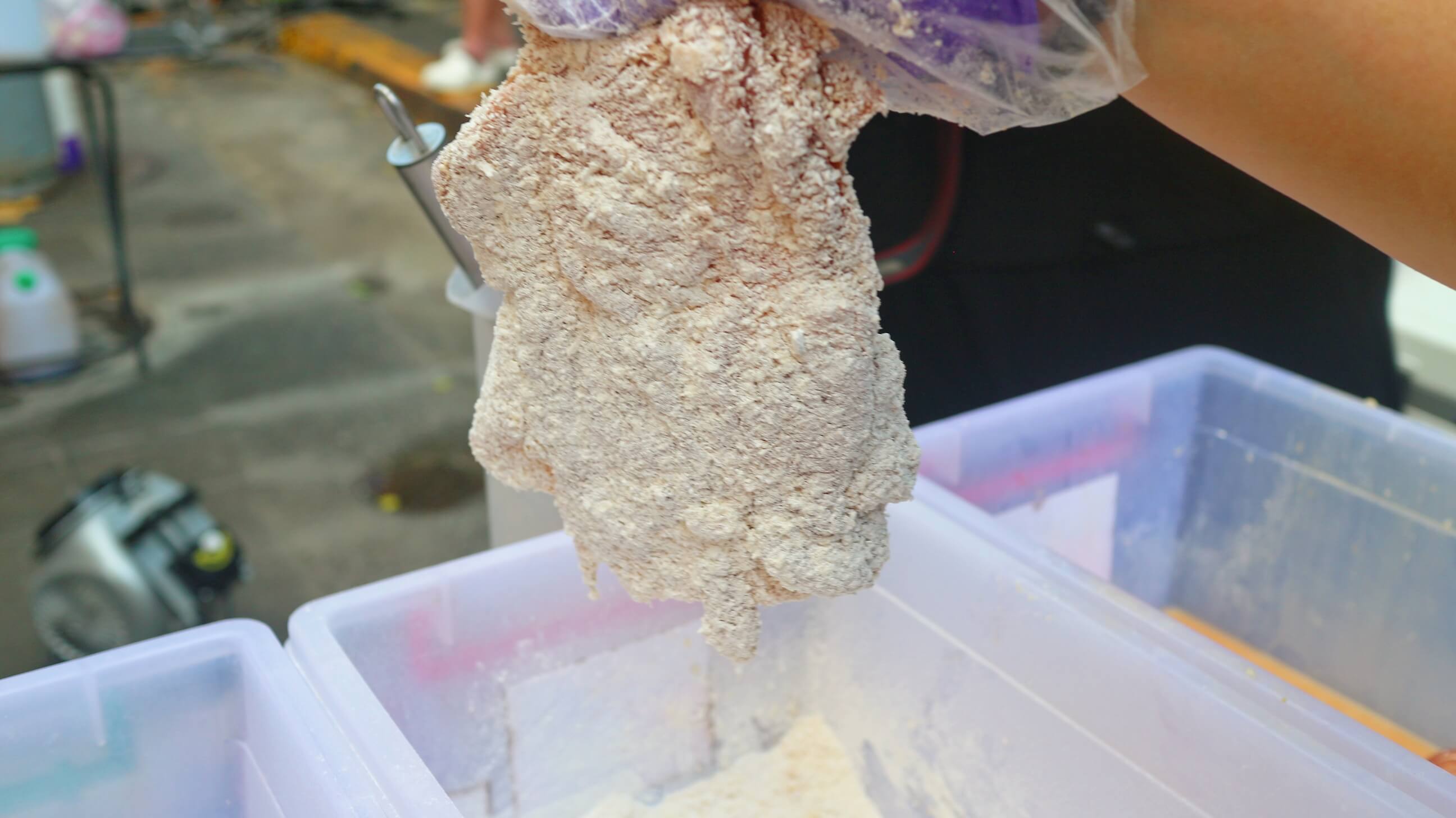 現點現炸 , 一整隻的巨大雞腿直接下去炸 , 看起來好過癮哦 , 炸雞腿大約需要6-7分鐘的時間 , 可以先點餐結帳 , 在去逛逛後再回來取餐