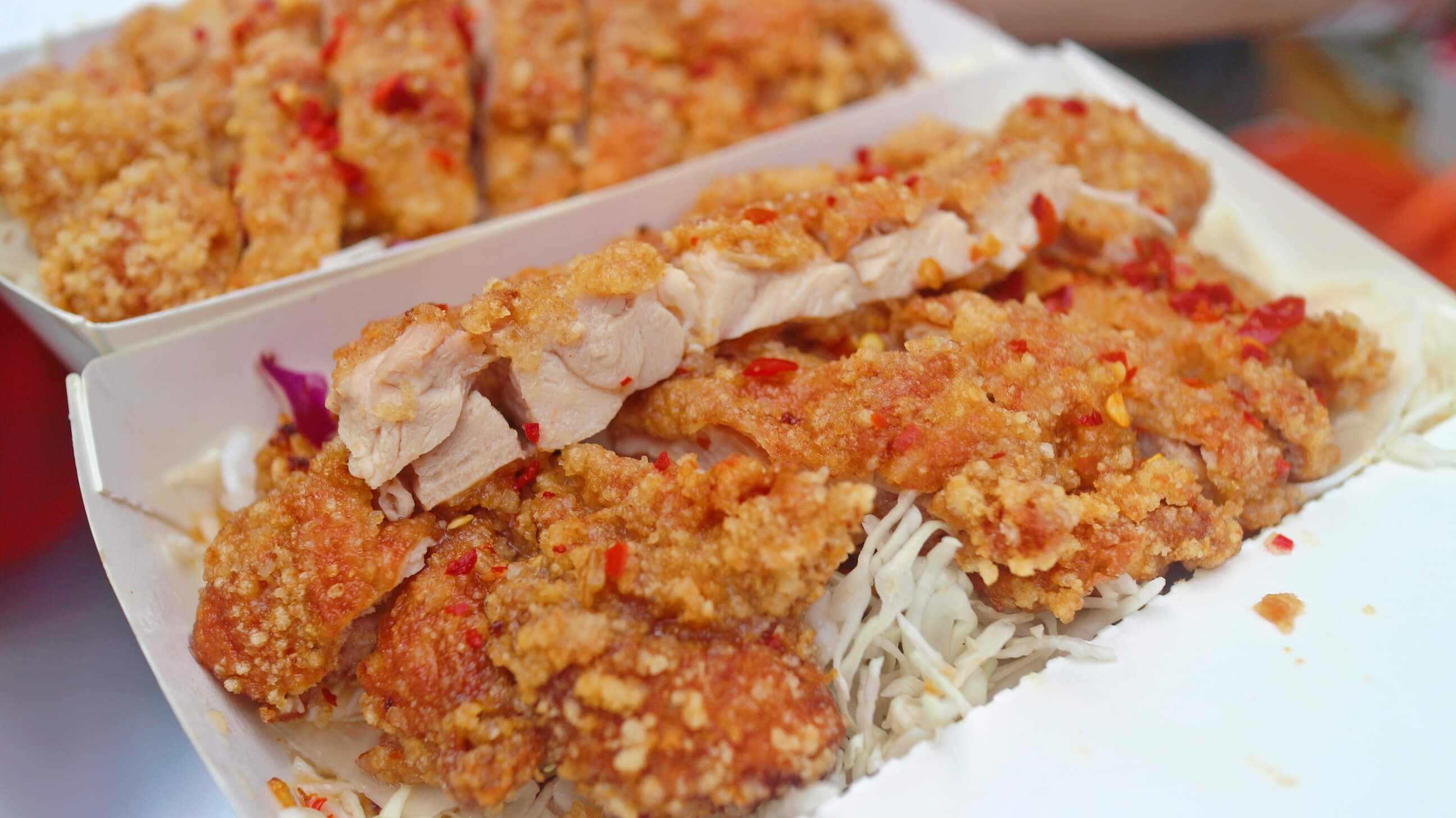 寧夏夜市必吃美食推薦「泰。泰樂椒麻雞腿」生意得不得了 , 一大隻雞腿炸的酥香 , 外脆肉嫩又多汁 , 淋上獨門醬汁酸辣夠味 , 配上滿滿鮮脆的高麗菜絲 , 份量爆多 , 讓人一吃上癮的夜市小吃 , 平價美食真的很厲害 , 泰。泰樂椒麻雞腿料好實在 比泰式餐廳的還要好吃 , 有機會也來品嚐看看吧