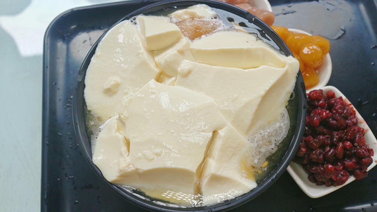 糖水做成冰品 , 一加就是半碗在加入半碗豆花 , 份量真的很大、cp值很高