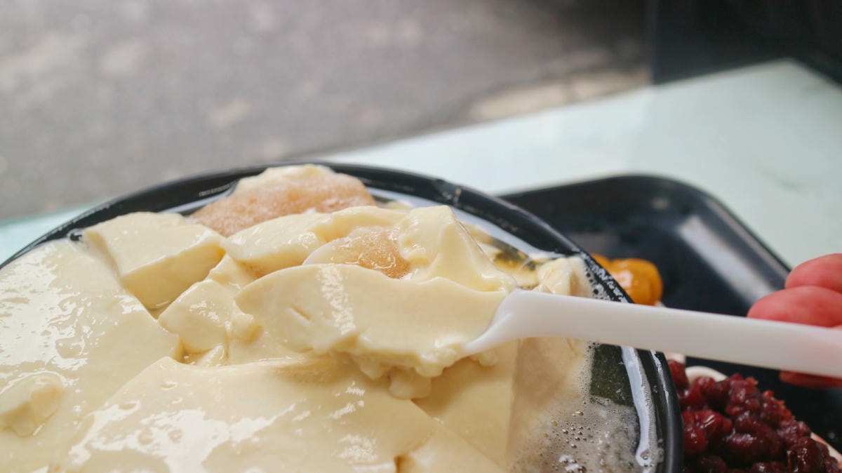 豆花吃起來像似豆腐的滑嫩帶點扎實感 , 在口中交織著淡淡豆香 , 豆花好吃我很喜歡 , 如果小美住宜蘭一定天天都來買…!