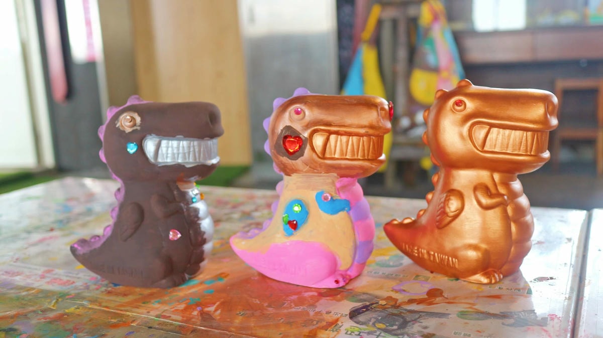 購買套票中包含了DIY彩繪存錢筒及DIY彩繪小恐龍擴香石 , 在這裡畫