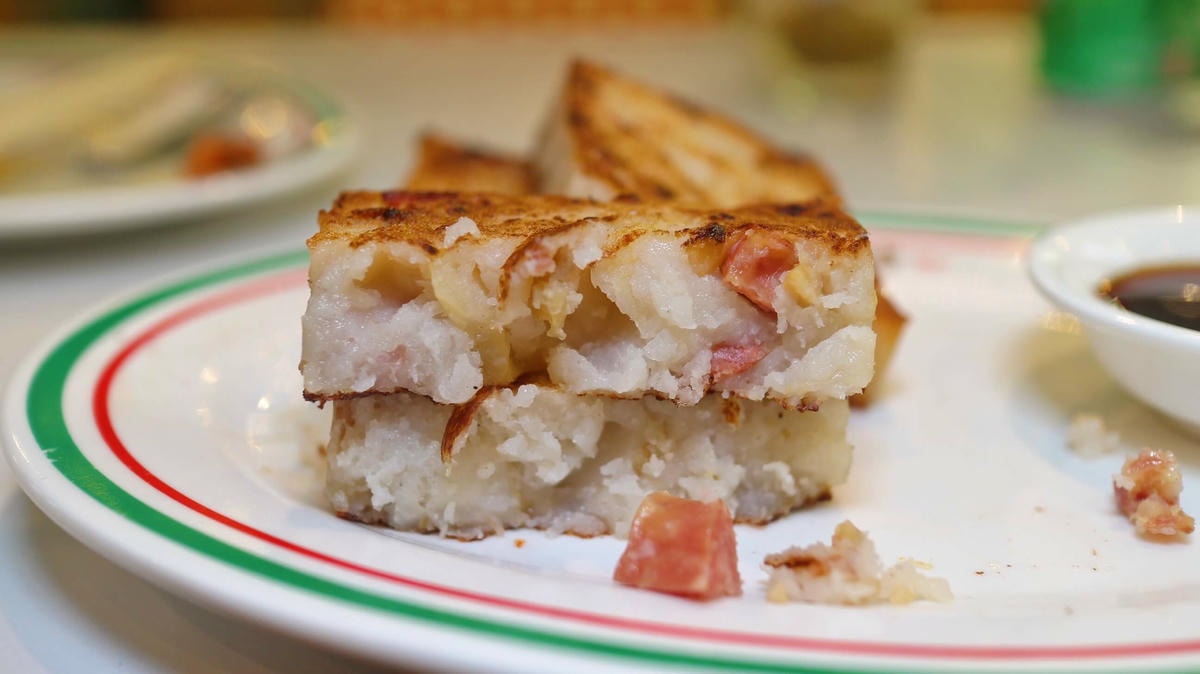 表皮煎到酥脆咬下吃得到臘腸 , 綿密中又帶紮實口感 , 鹹度剛剛好不需要沾醬就很好吃