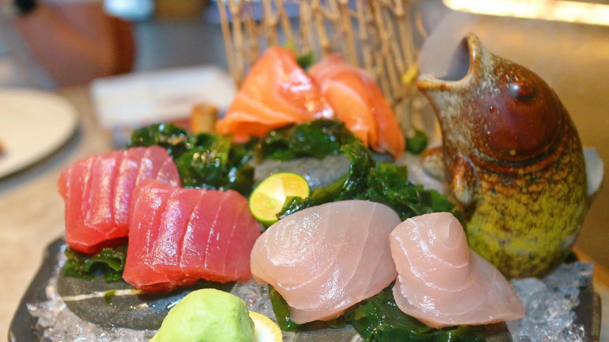 極上綜合生魚片包含了鮭魚、鮪魚、旗魚三種生魚片 , 吃起來鮮美甜香、清爽可口很新鮮 , 入口即化 , 低熱量又富含營養的海鮮美饌